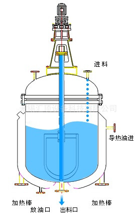 搅拌罐盖上部配置有传动装置(电机或减速器),由传动轴驱动搅拌罐内的搅拌器。